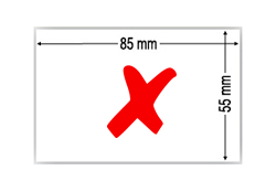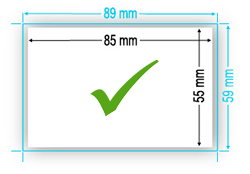 Añada 2mm más por cada lado al formato final deseado: Ejemplo: Para un tamaño final de 85x55mm, realice su diseño con tamaño 89x59mm